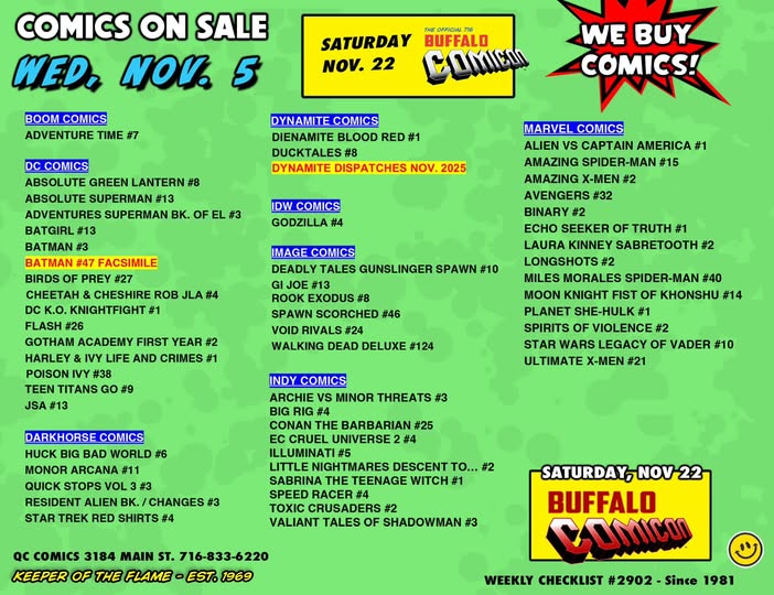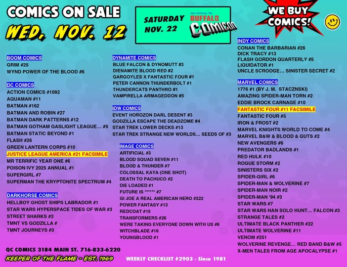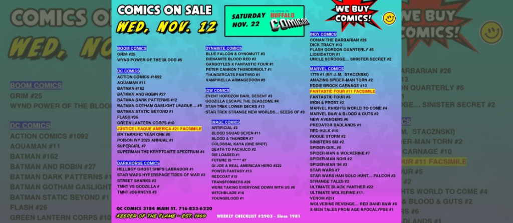 Read the latest Updates from Queen City Bookstore, and know what’s going on in the Comic Book Universe.